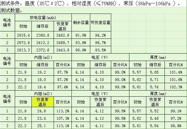 因考虑到南方气候问题,我司算生产的电池,除移动电源及低温体系电池外,其它均可满足80℃的高温性能要求